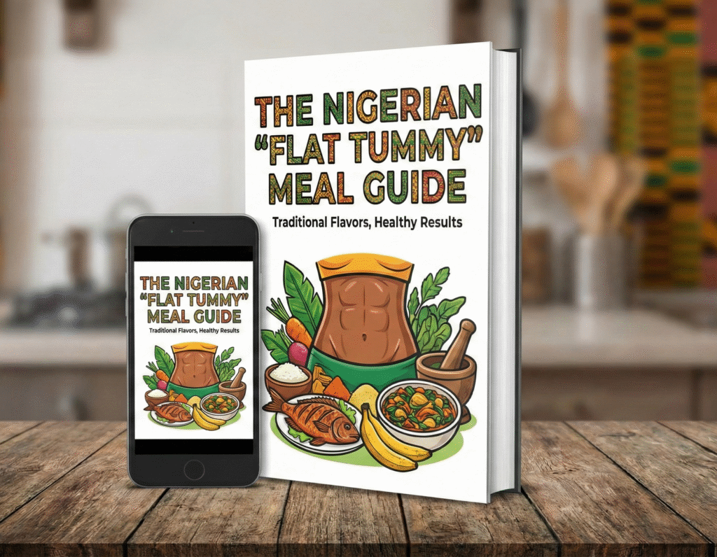 FREE BONUS #1: The Nigerian “Flat Tummy” Meal Guide (Value: N8,500): Are you scared that eating Swallow, Beans, or Bread will bring back the bloating? Don’t worry! Inside this guide, I list the exact Nigerian foods that are safe for your tummy and the ones you must avoid. You will learn how to prepare your favorite local dishes so they digest easily without making your stomach swell up like a balloon. (Yours FREE when you order 2 or more packs)